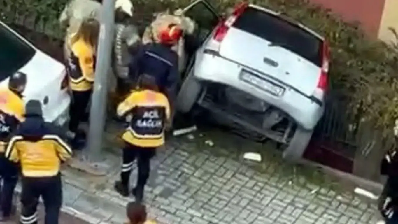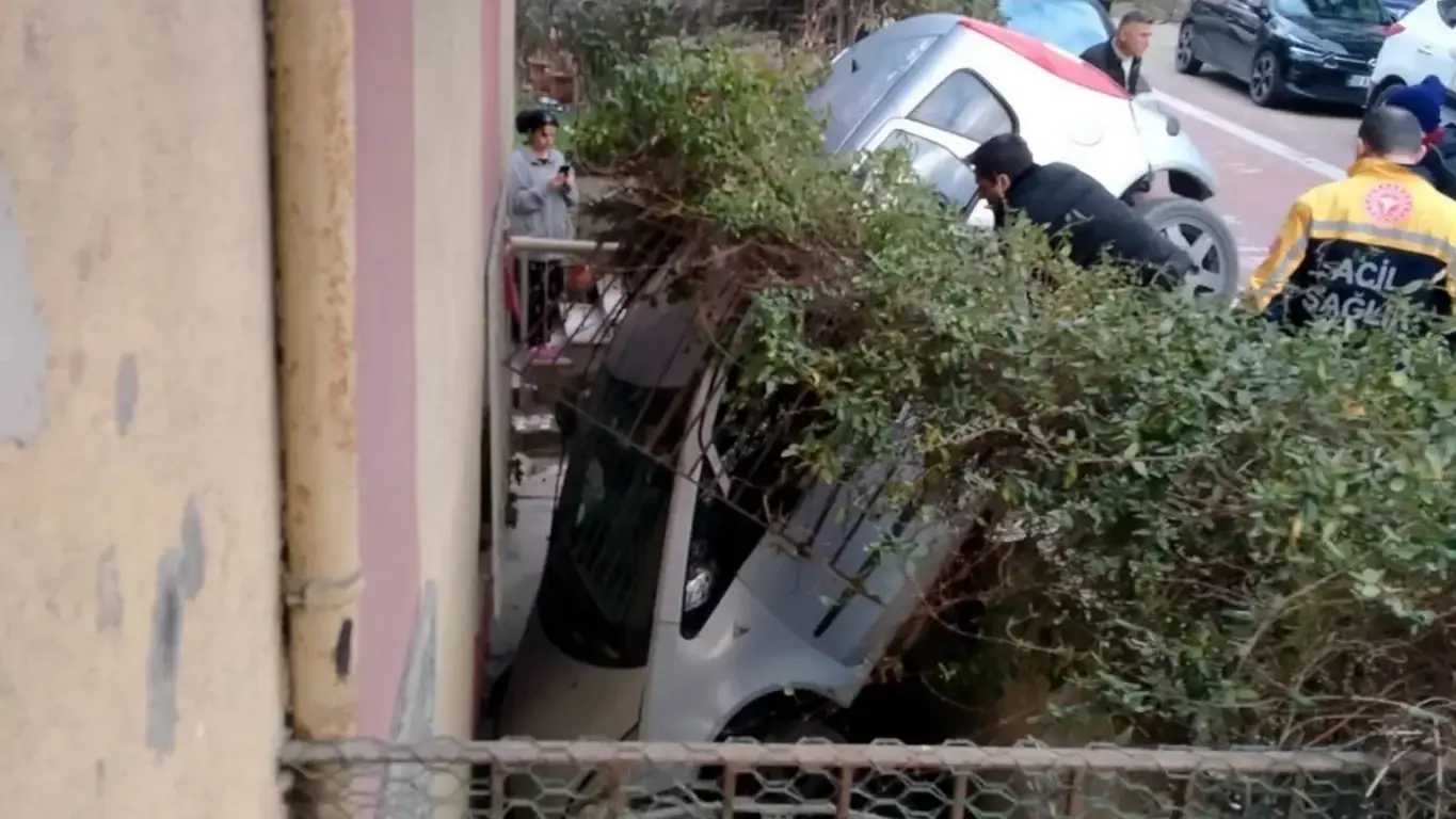 Yaşlı sürücü, karşı araca yol vermek isterken anlık bir panikle fren yerine gaza bastı. Araç kontrolden çıkarak bir binanın duvarını aştı ve bahçe boşluğuna düştü. Araç metrelerce yükseklikten aşağı düşerken sürücü İ.K. araçta mahsur kaldı.