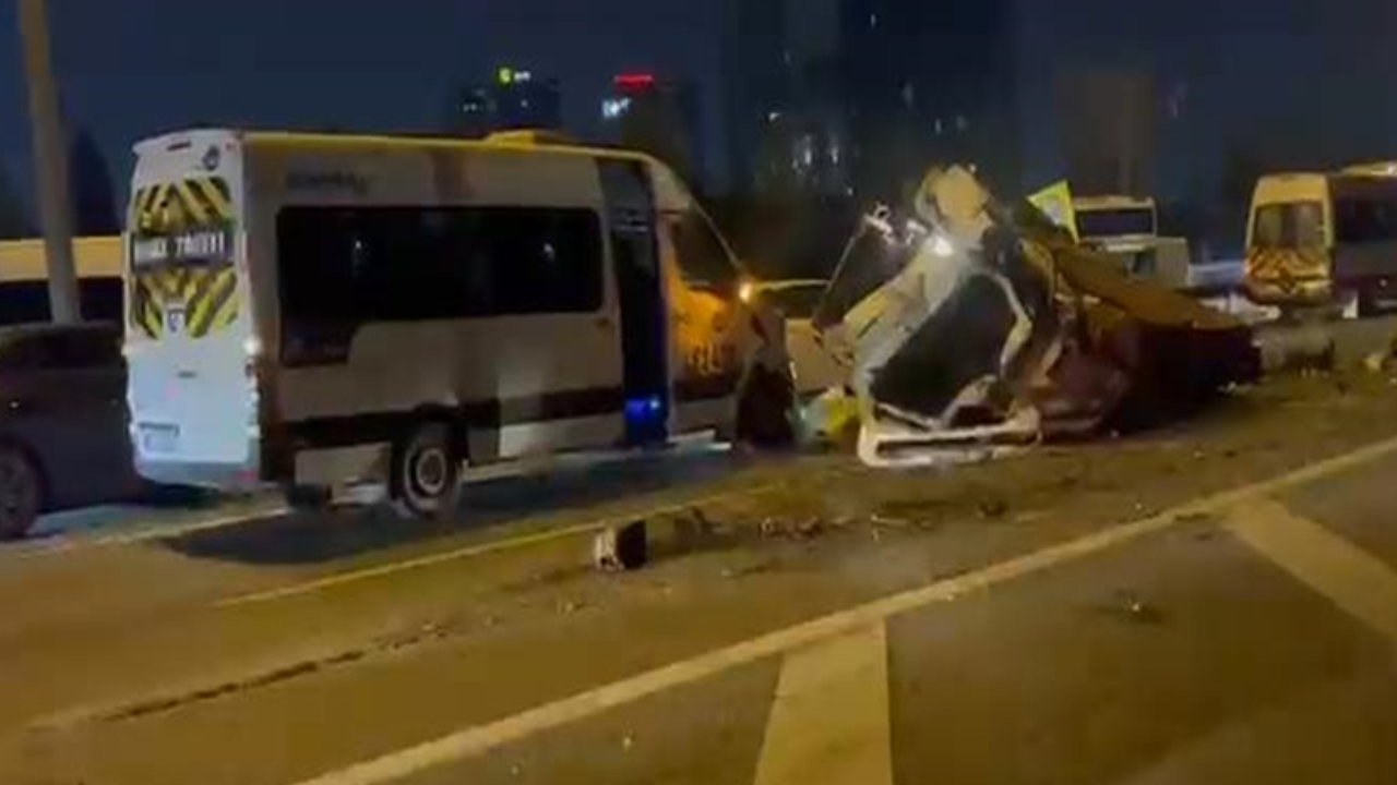 Kaza, Bağcılar, TEM Otoyolu Mahmutbey gişeler istikametinde hafriyat kamyonu, kamyonet ve servis minibüsünün çarpışması sonucu meydana geldi.