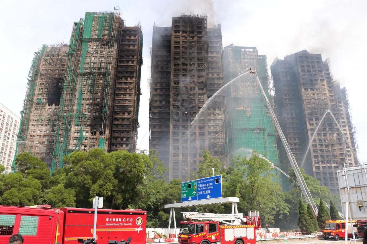 Tai Po ilçesinde 1900’den fazla dairenin bulunduğu Wang Fuk Sitesi’nde 26 Kasım’da öğle saatlerinde başlayan yangın, binaların tadilatı için dış cephelerine kurulu bambu iskeleler ile yanıcı izolasyon malzemelerinin tutuşmasıyla hızla yayılmıştı.