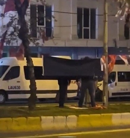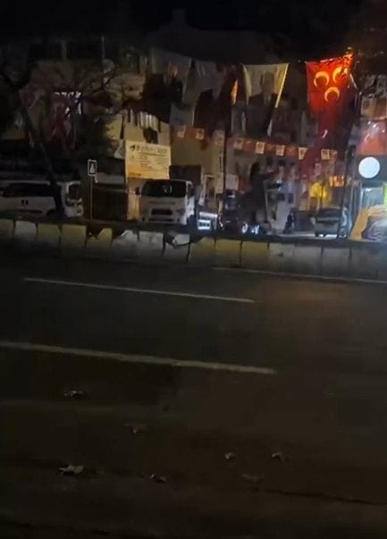 Kimliği belirsiz bir kadın Esenyurt’ta yollara asılmış olan Devlet Bahçeli ve MHP bayraklarını elindeki bıçakla kesti.