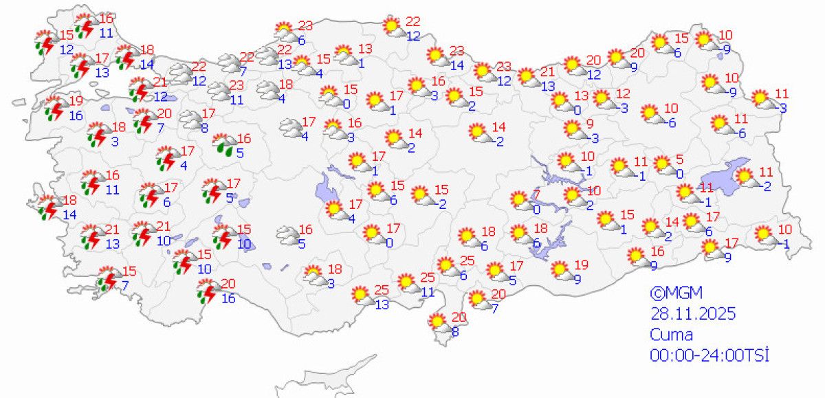 Özellikle kıyı bölgelerde sulu kar ihtimali de öne çıkıyor.