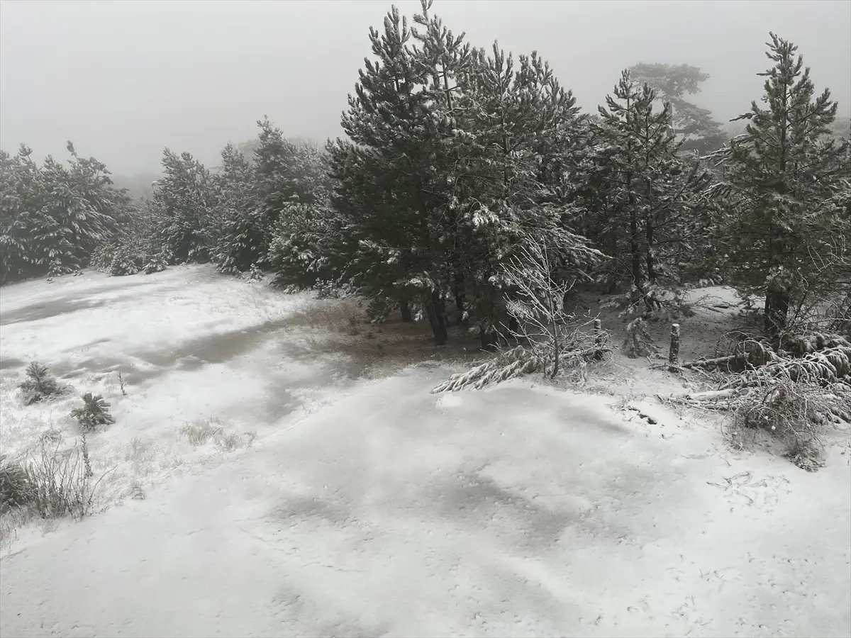 Yağışın ardından Ulus Dağı’nın zirvesi beyaz örtüyle kaplandı.