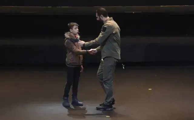 ‘Ümran bebek’ olarak ünlenen fotoğrafın ardından 13 yaşında bir çocuk olarak kutlama etkinliklerine katılan Dakneş, sahneye çıkarak zafer konuşması yaptı.
